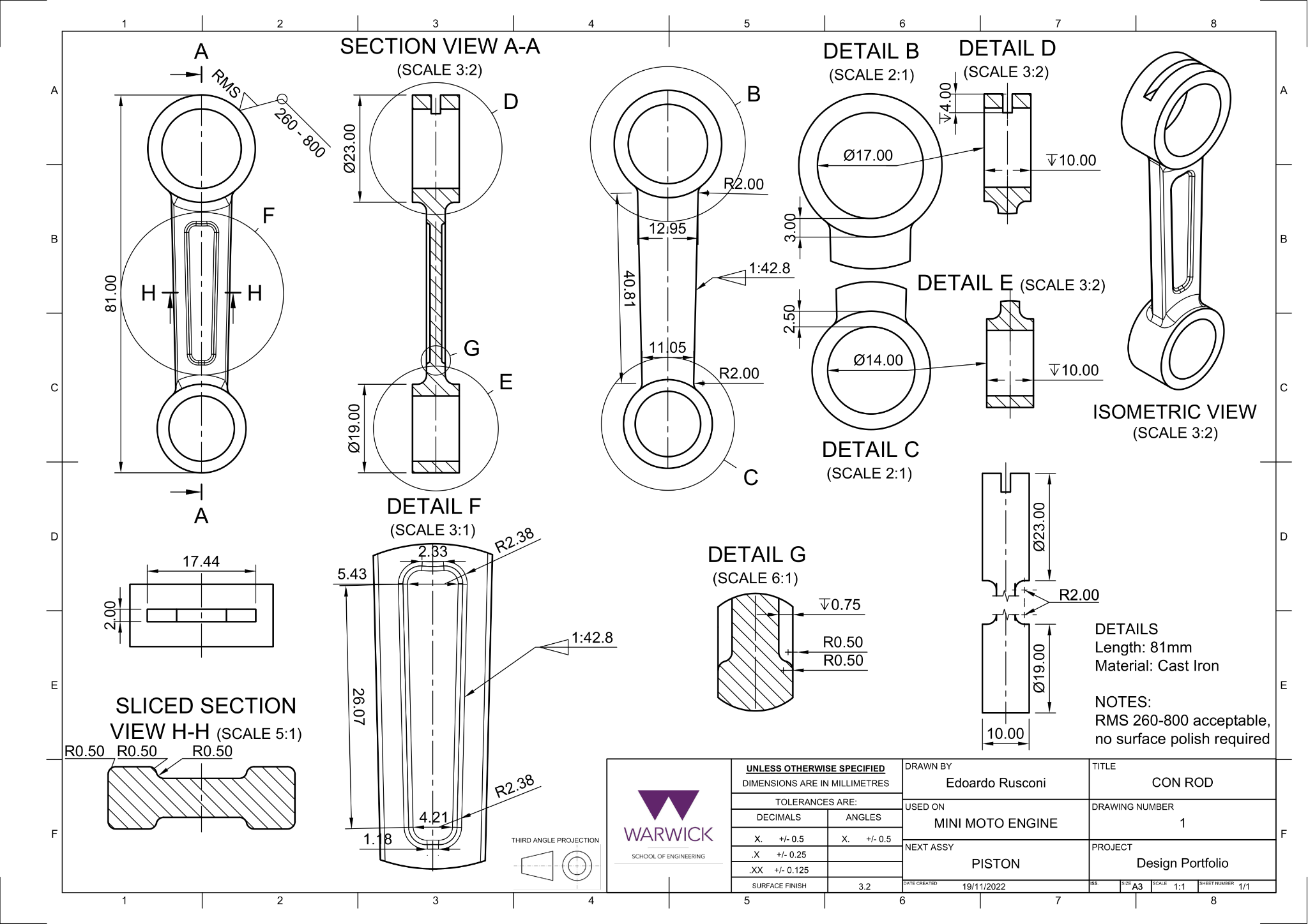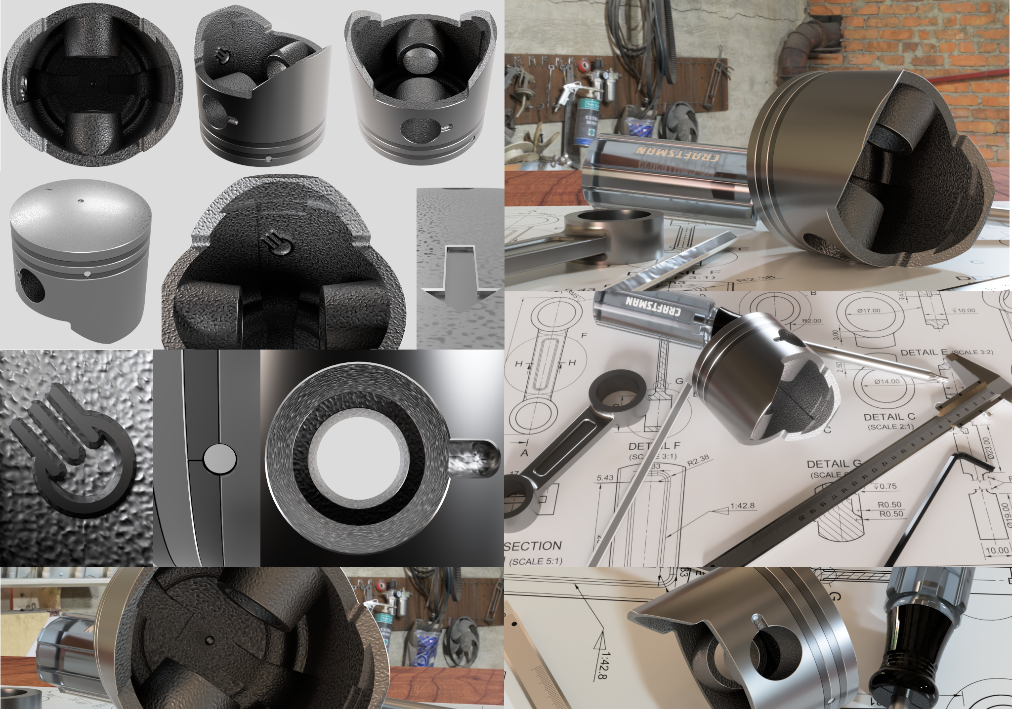 Designed technical drawings with machining annotations for manufacturer including tolerances. Animated a single cylinder motorbike engine, modelled the engine’s piston head and racing simulation rig with 3D renders.